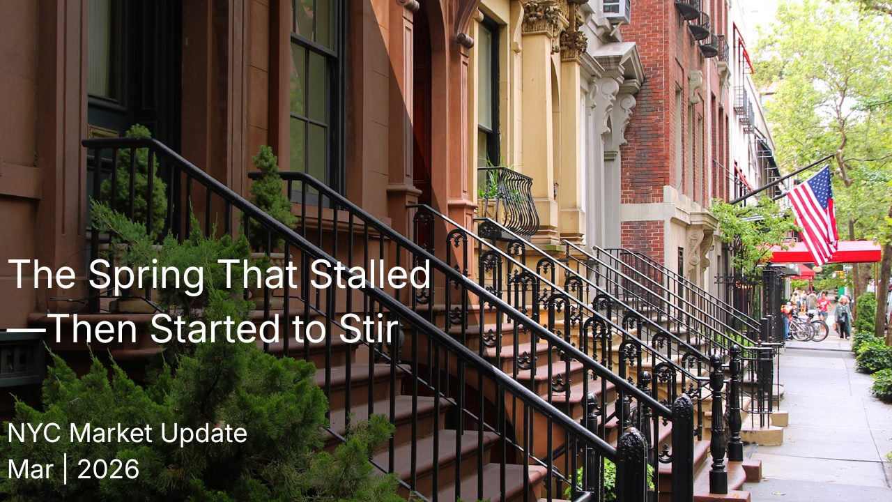 Spring is here, but the long-awaited spring selling season hasn’t quite followed. It feels like NYC sellers have been waiting for momentum to return for nearly four years. Just as it seemed like the market might stabilize, new uncertainty emerged. Between geopolitical tensions, rising gas prices, stock market volatility, and higher interest rates, buyers once again pulled back in March. However with stock prices recovering, activities picked up in April